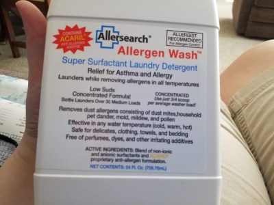 I mentioned this to my doctor, and she recommended washing my bedding in hot water. The problem is that hot water shrinks things, and I don’t really like fighting my spouse for blanket. Fortunately, my mother has a solution: