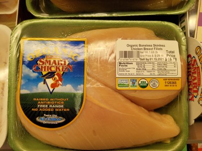 It\’s hard to see on the package, but on the right hand side label, at the bottom left, there\’s the Certified Humane label. Weirdly, only the organic Smart Chicken has that label. The regular (blue packaging) version doesn\’t.