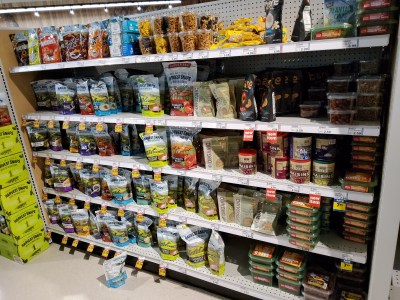 Mostly hidden in the near side of the aisle is the \”we\’re fancy and humane\” section.