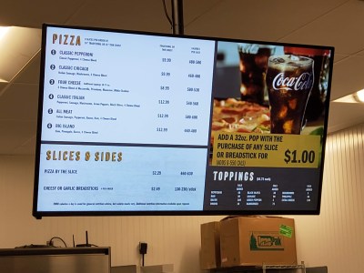 Yep. Before we kiss this section goodbye… if you can be tempted by convenience food but insist it be hot… well, for a nice markup, you may buy a pizza right here and save yourself the trouble of having to wait until you get home, or use the oven.