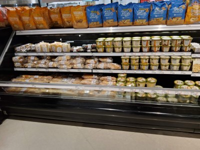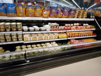 The rest of the deli section is a series of floating island-aisles, about half the length of the meat section ones. They\’re stubby rectangles with shelves on all four sides. This particular one is the closest to the deli counter, as you can perhaps tell by looking at the packaged-meat contents. Do note the snack packages of beef jerky and meat/cheese snacks right next to it. Those are awfully small, though, don\’t you think?