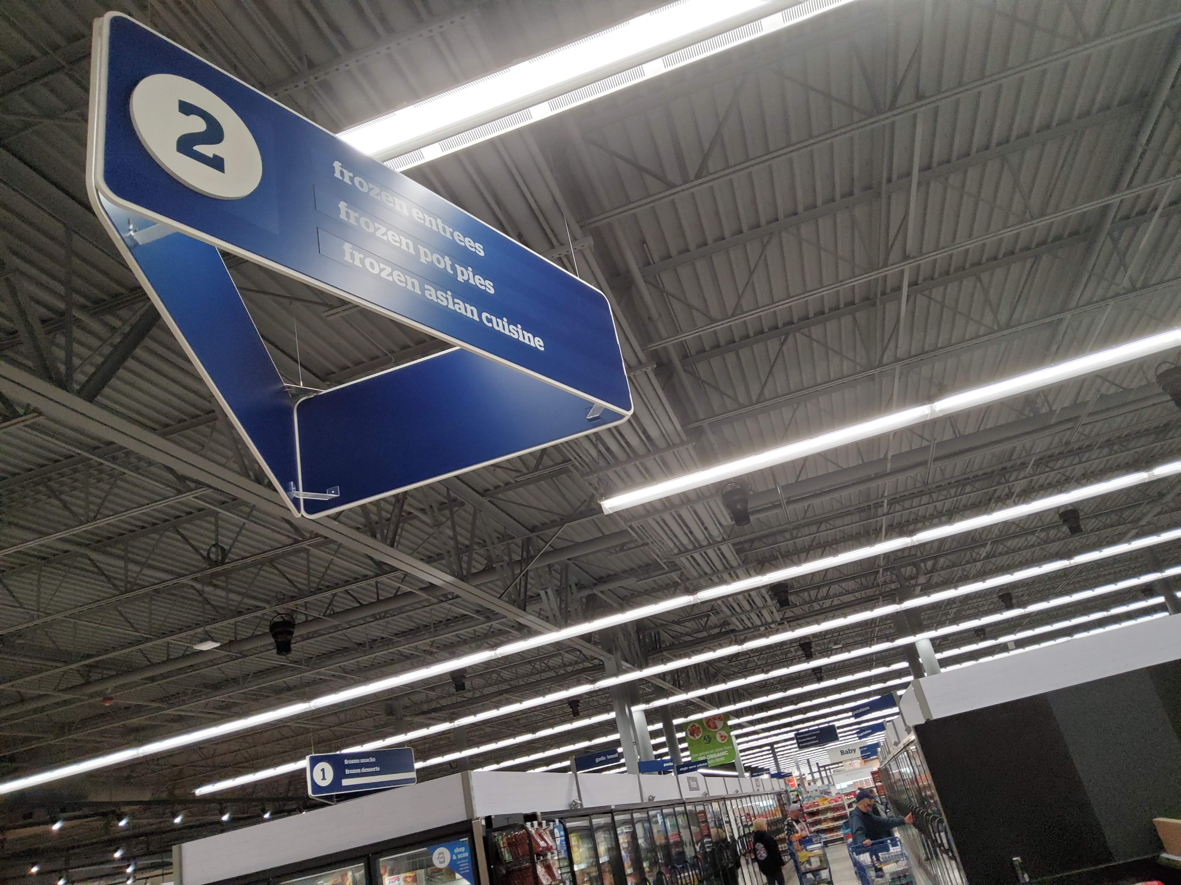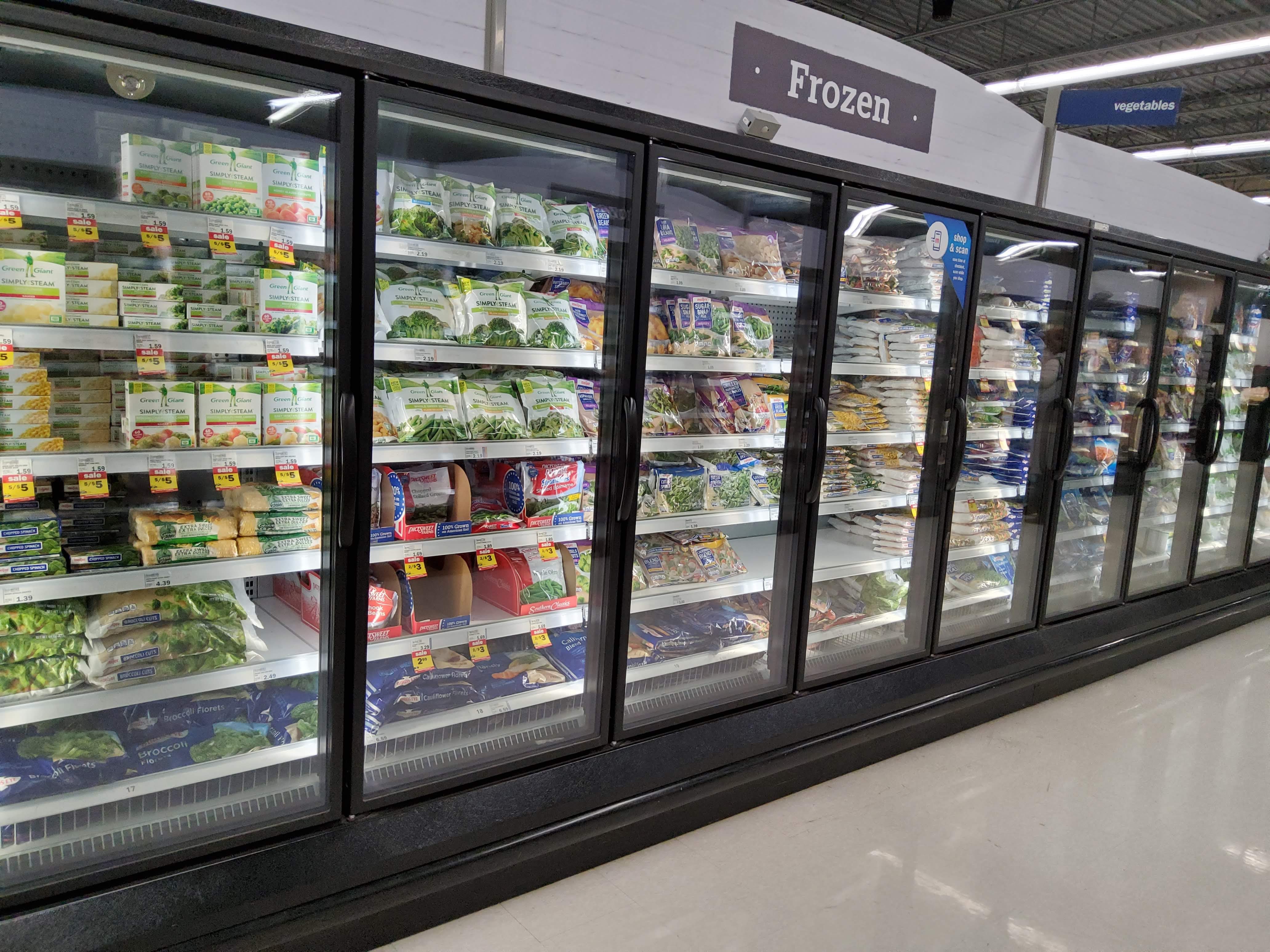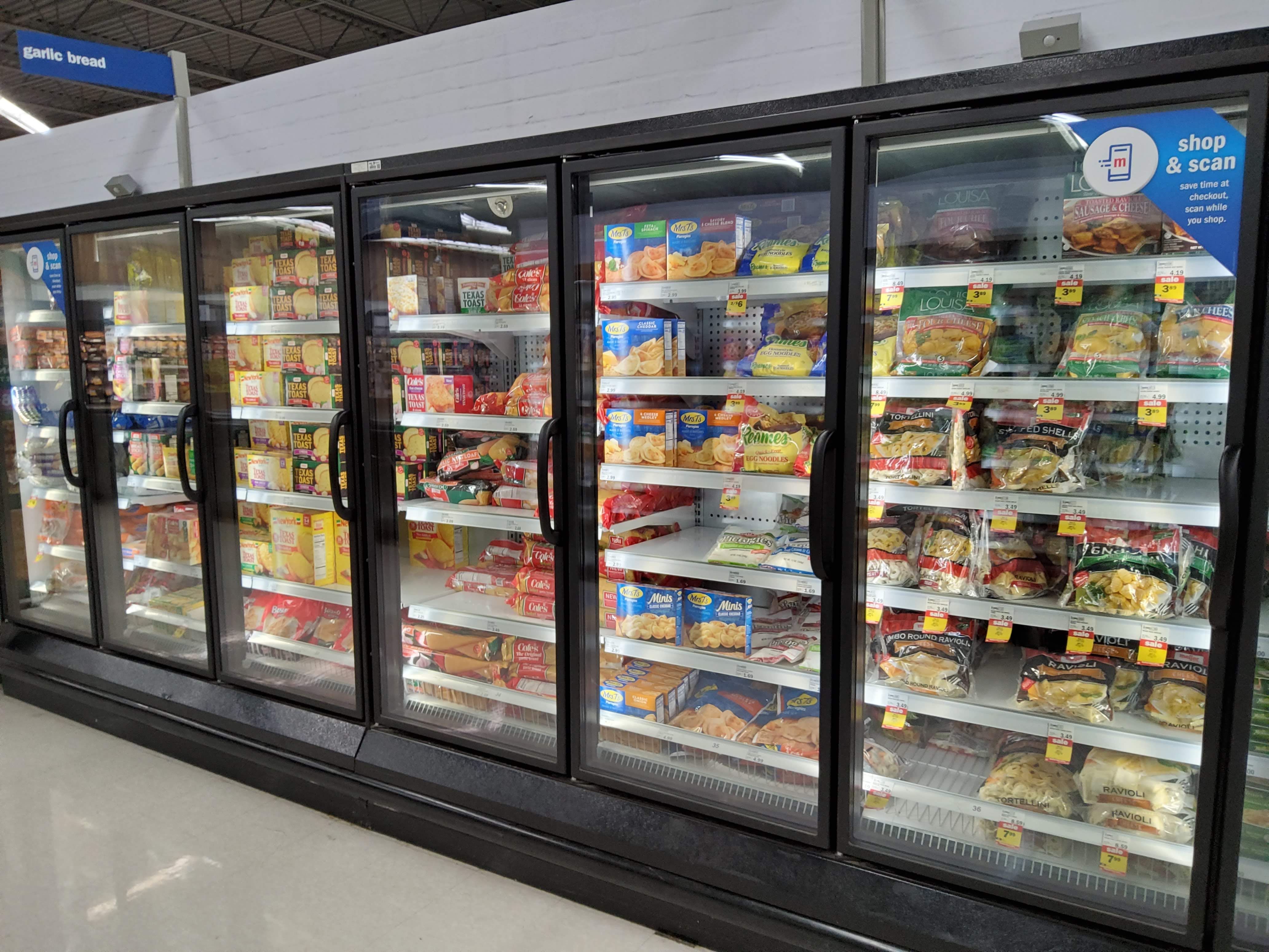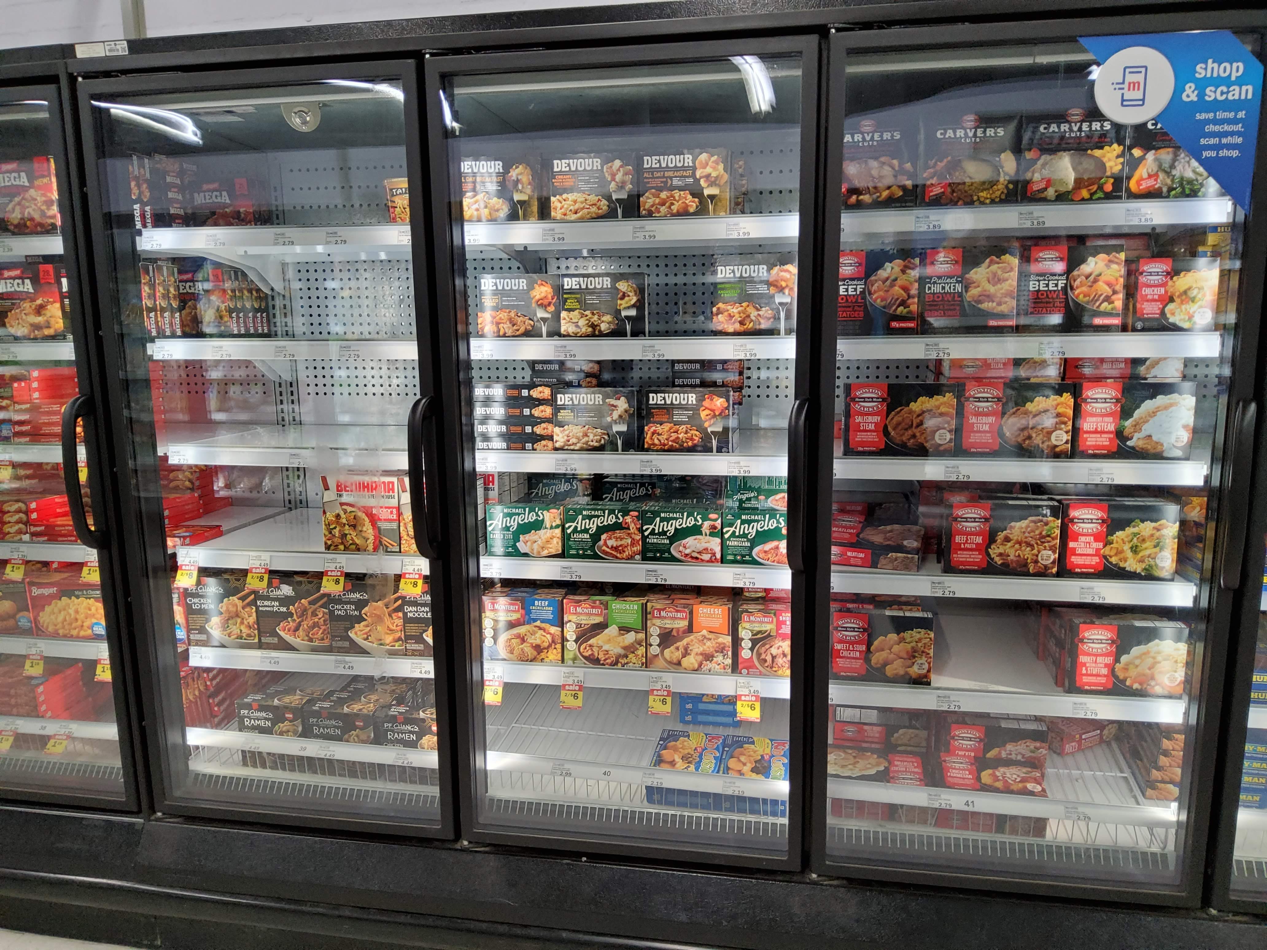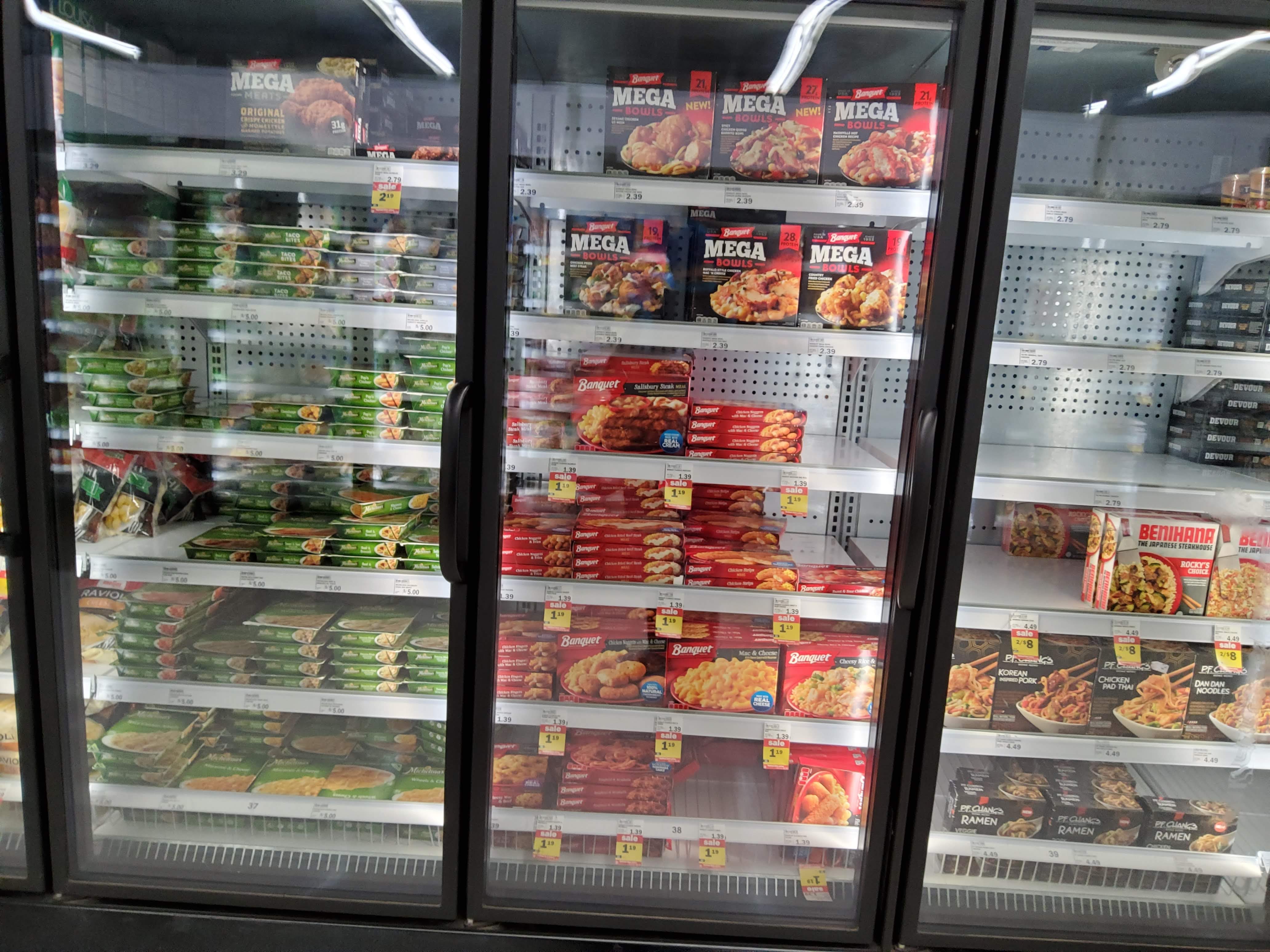 Our first hint that this is going to be significantly different than imagined is this sign. \”frozen entrees, frozen pot pies, frozen asian cuisine.\” Yes, \”asian\” lowercase. Ignoring the multiple levels of badness there, all of these things are ultra-processed convenience food.