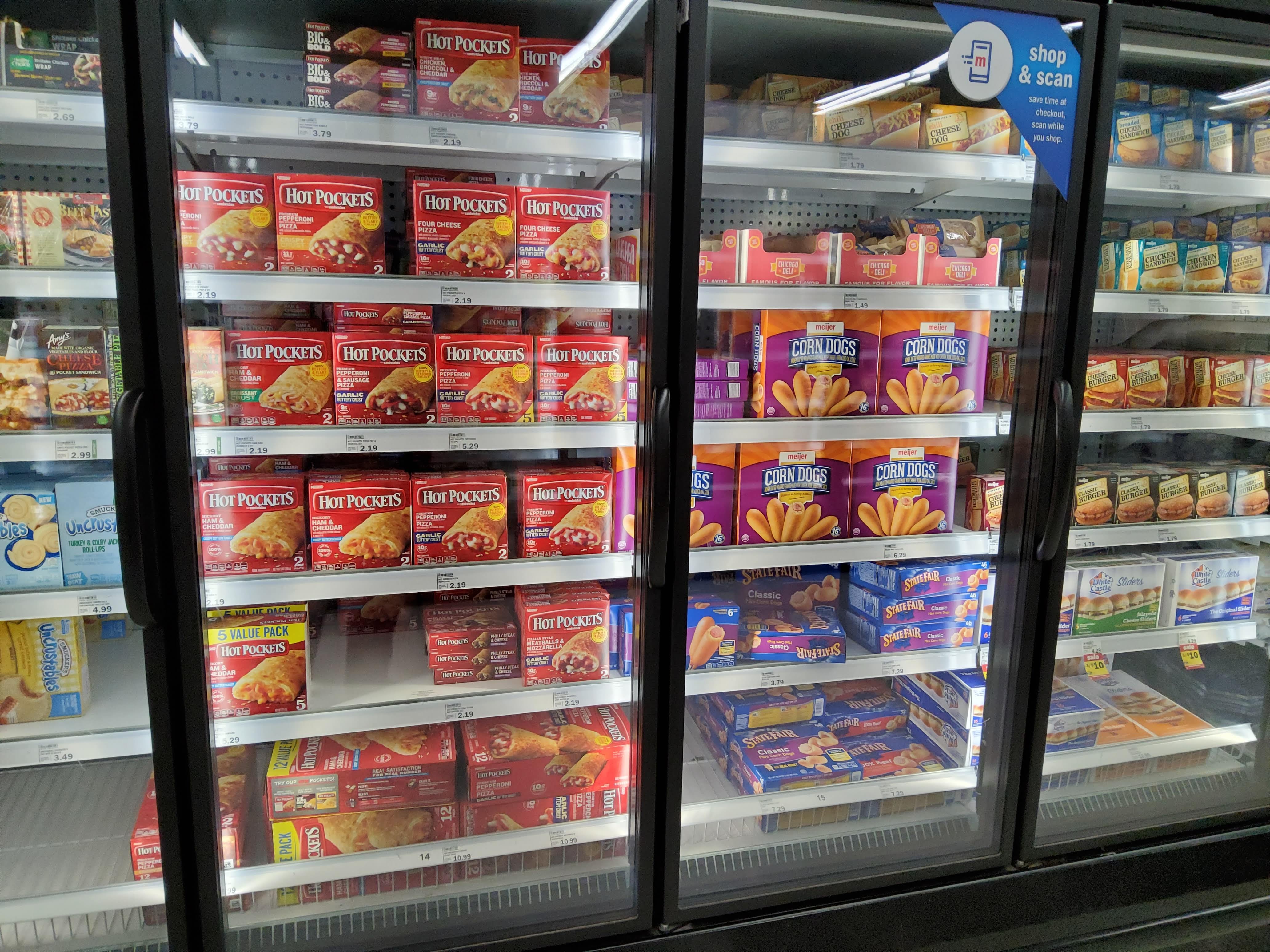 The sandwiches deserved their own section for some reason. Hot Pockets also live here, and corn dogs just because.