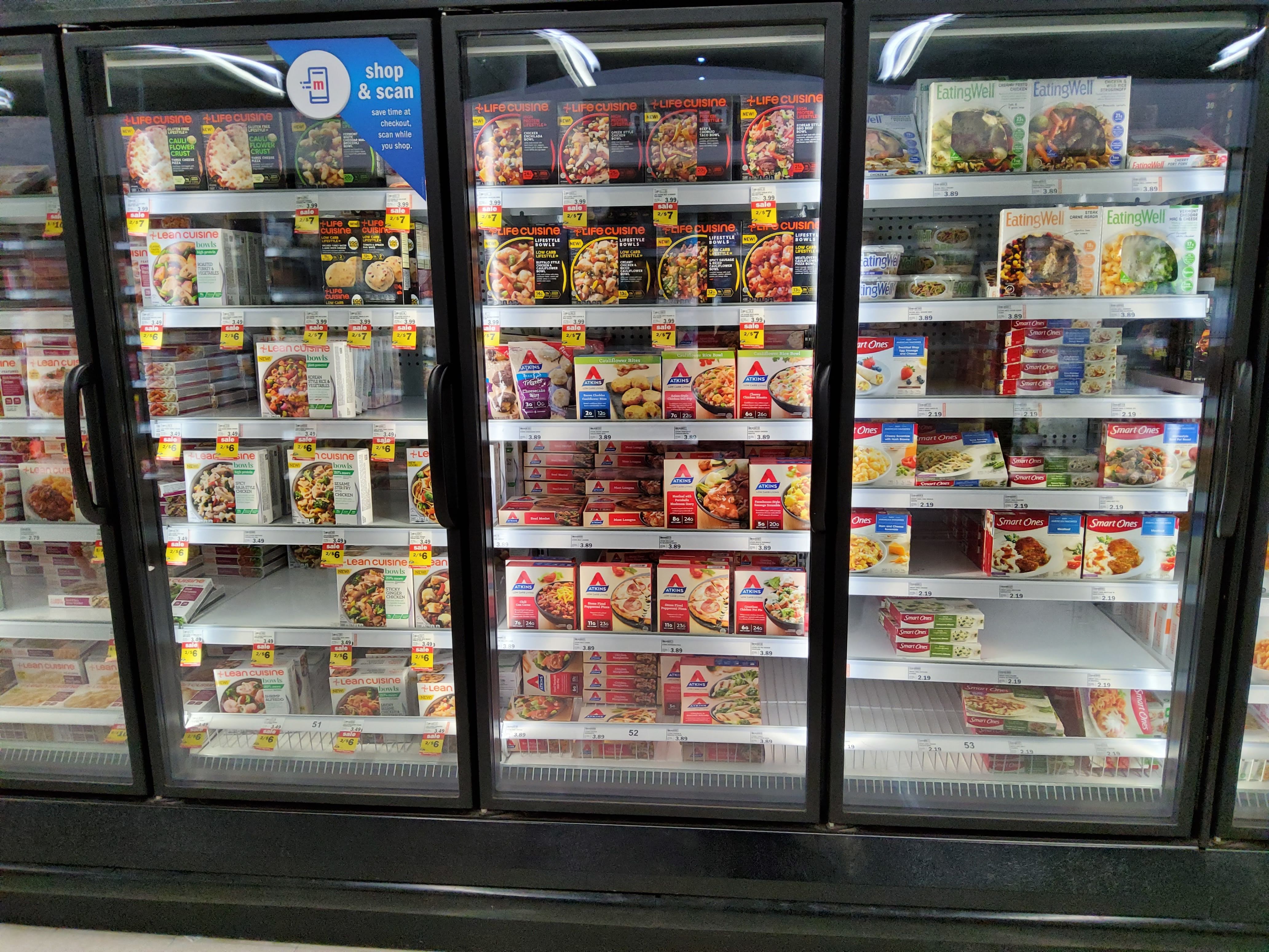 So yeah. I think I was too demoralized at this point to actually count the brands of convenience meals. But there are a lot. The US has its health priorities all wrong, in that we tend to overload on meat and carbs, and ignore everything else. These meals will be very true to stereotype.